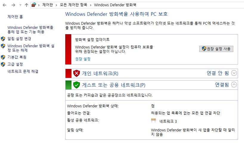 제어판에서 defender 설정에서 허용되는 프로그램에 매크로 익스플레스를 지정하세요